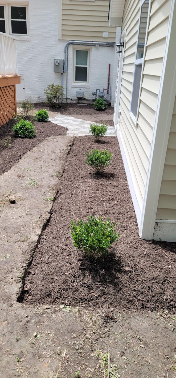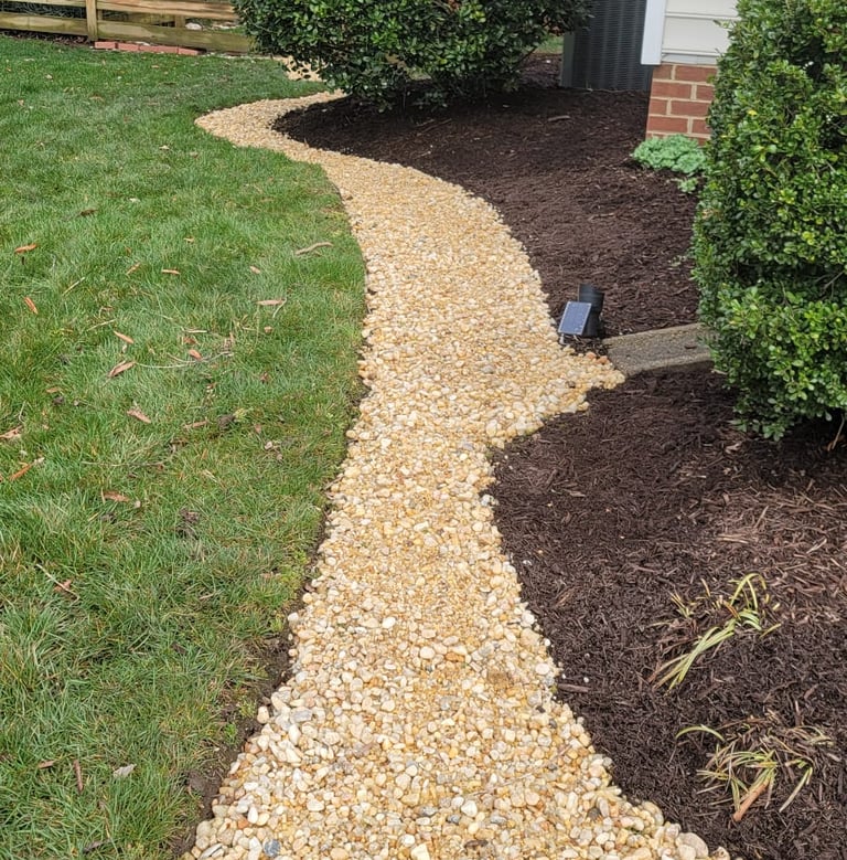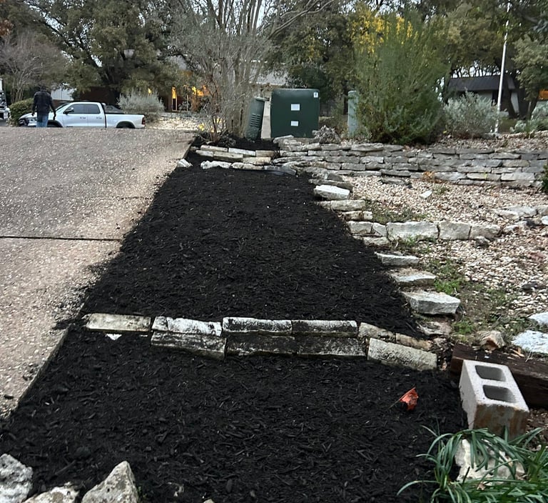 Custom landscape design and installation services, including mulch, rock, and new lawn installation to transform outdoor spaces with professional planning and execution.